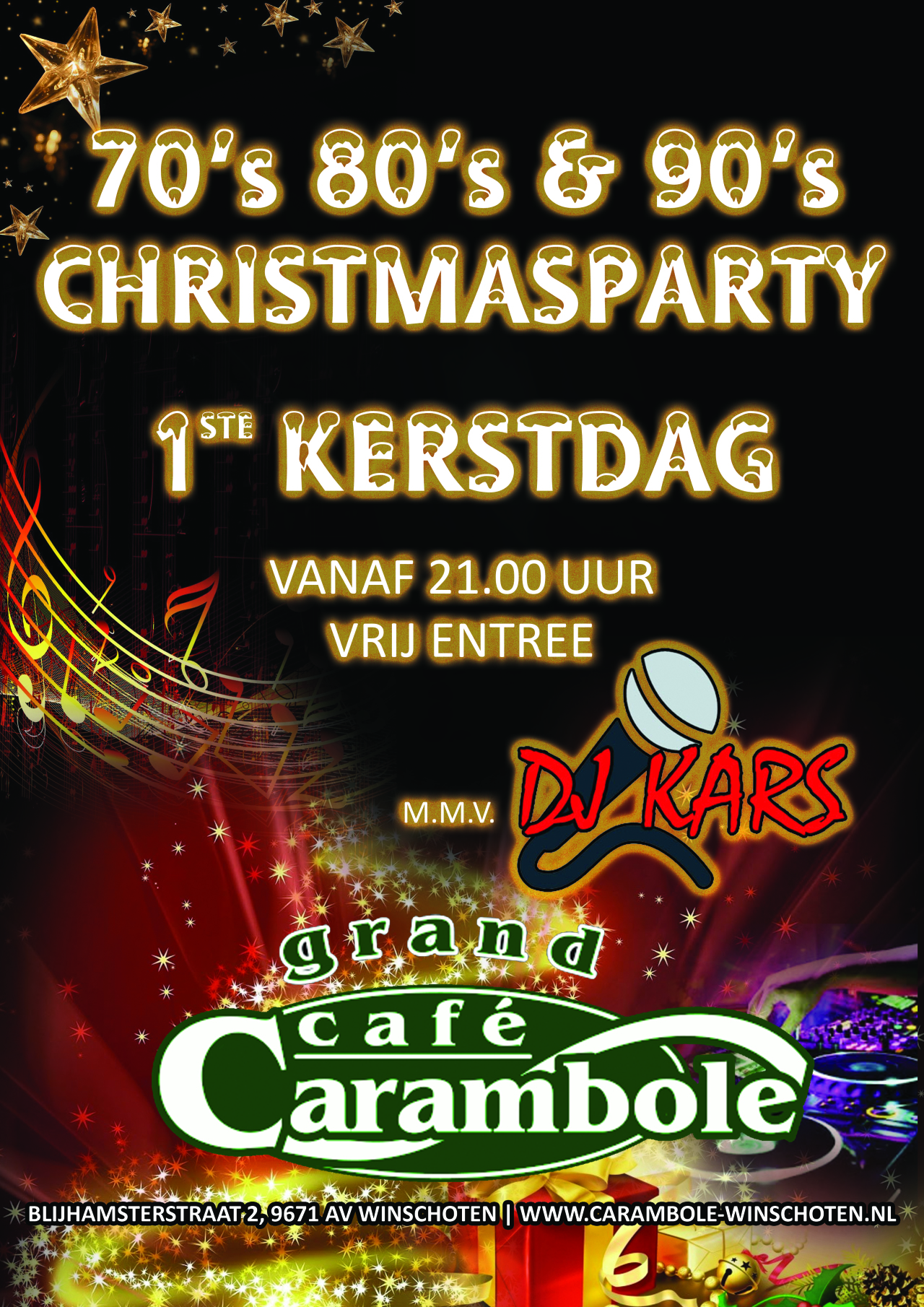 Eerste Kerstdag hebben we traditiegetrouw weer onze Christmasparty met DJ Kars!Een avondje swingen op de dansvloer gegarandeerd!Partyzaal open: 21.00 uur!Gratis entree!
